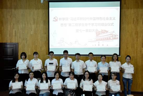 校准思想之标,铸就党性之魂。2019年6月27日,williamhill英国于主西104举行“习近平新时代中国特色社会主义思想”第二期学生骨干学习班结业仪式暨七一表彰大会。