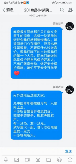 特殊时期,辅导员们在各种角色中转换,逐步形成各个年级的管理联动机制,对学生的身心健康、学业情况排查彻底准确无一遗漏。在宣传动员、安全管理、思政教育等方面发挥积极作用,以实际行动支持了疫情防控工作,彰显了他们的责任意识和担当精神,同时通过平时他们对全院同学的关心和爱护,让这份关心和爱护会传递给来自于五湖四海的林院学子。繁花满天,瞭望香山。愿如期而至的不只是晴天,还有疫情的消散和每名学子的平安。