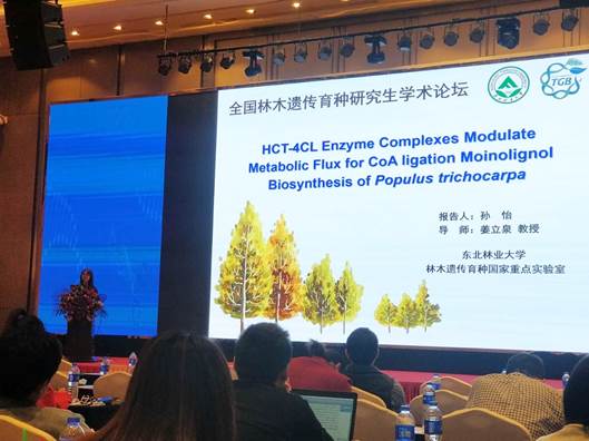 博士研究生王志凤和孙怡分别以《MYB161转录因子介导SND1家族基因的反馈调节参与木材形成》《毛果杨木质素单体合成途径中4-香豆酸辅酶A连接酶(4CL)与莽草酸羟基肉桂酰转移酶(HCT) 复合体解析》为题,揭示木质素单体合成的机理,为利用分子育种技术进行林木材性改良提供路径。两名博士生的报告内容新颖,注重科研创新,在众多现场报告当中脱颖而出,获得评审专家一致好评。