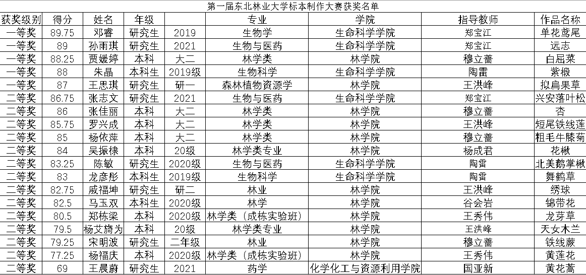 本次比赛不仅为对植物标本制作感兴趣的同学提供了一个展示自我的平台,更是丰富了本校学生的文化氛围,推动了大学生生态文明思想教育,增强了大学生的专业知识和技能,推进了专业活动建设和文化活动建设的共同发展,发现和培养了一批在学术创新方面有潜力、有作为的优秀学生。希望受到表彰的学生珍惜此次荣誉,充分发挥当代大学生的专业性和创新性,再接再厉,勇于实践,在实践中求创新,在创新中谋发展,成为祖国林学事业的栋梁之才。