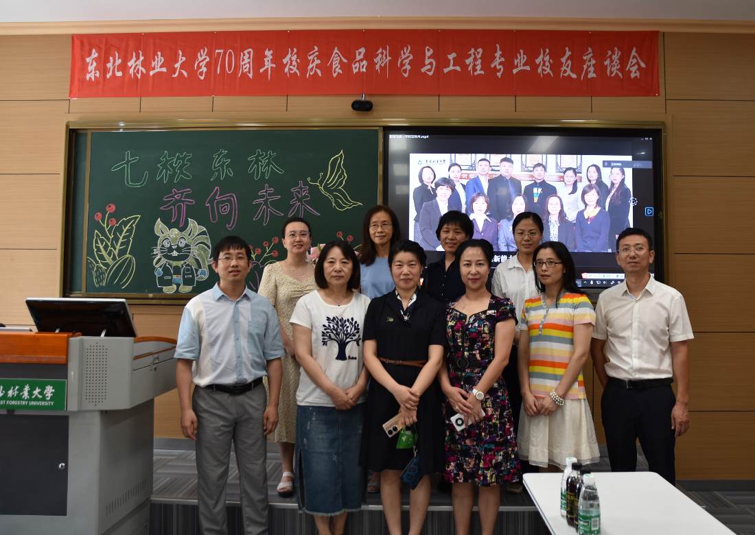 座谈中,校友代表黑龙江省质检院业务科长周芳、哈尔滨秋林饮料科技股份有限公司研究院院长邵占梅、哈尔滨学院食品工程学院徐薇老师在会上讲述了曾经在东林奋斗的青春往事,表达了对母校培养的感激之情,以及对母校的发展感到自豪和骄傲,并以“学参天地,德合自然”的精神与校友们共勉,引导在校学生向广大优秀校友学习,激发同学们的荣誉感和自豪感。线上会场,延边大学食品科学与工程学科带头人徐红艳校友以及30余位海内外的各届校友通过视频的方式在“云端”表达了对母校建校70周年的祝福之情,以及对食品学科传道授业的感恩之情。座谈会的最后,食品学科实验室主任郭庆启老师代表专业全体师生再次对各位校友的回家表示热烈的欢迎,并希望广大校友能够在各自的工作岗位上努力奋斗,再创辉煌。