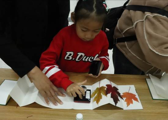 在显微观叶之后,孩子们还将采集的叶片制作成册,盖上专属印章,贴上特色贴纸,作为亲近大自然的专属纪念,俨然一份生动的秋日课堂笔记。