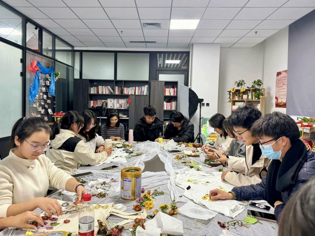 活动开始,杨轶婷同学为大家介绍了本次活动使用的材料,干花花材及制作方法,永生花的特点以及植物拓染等方面的内容,并向同学们展示了植物敲拓染的技术要领,制作过程和注意事项。杨轶婷同学亲身指导同学们如何进行植物敲拓染,让大家能充分感受大自然与手工结合的奇妙。