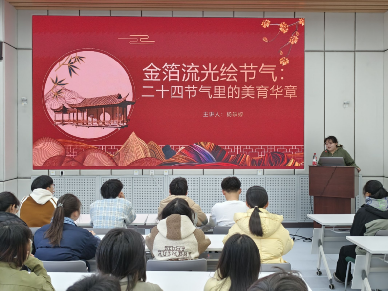 本次美育讲堂金箔画的制作选用了二十四节气的内容。二十四节气,起源于上古农耕文明,是黄河流域先民们通过观察天体运行、认知时节、气候和物候变化而形成的知识体系,是中华传统文化的重要组成部分,体现了古人对自然的深刻理解和智慧。
