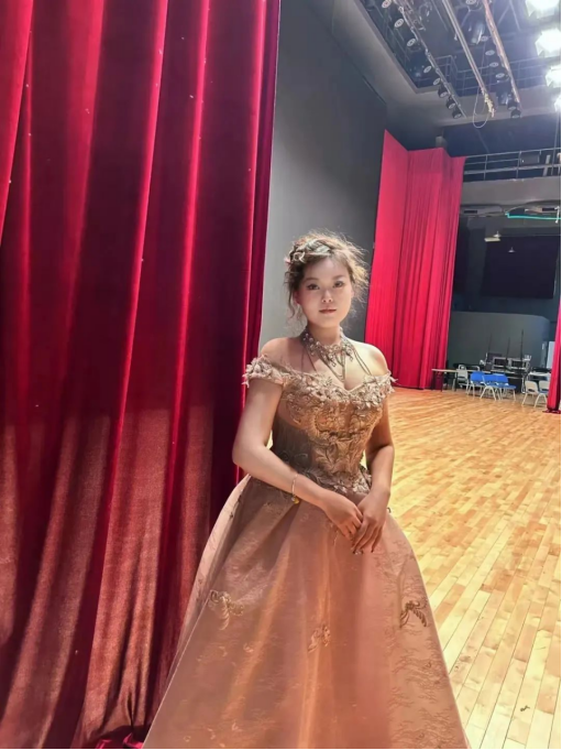 活动现场,杨轶婷同学为大家详细介绍了金箔画独特的艺术特点与精湛的制作工艺。纯度极高的黄金,经过千锤百炼的锻造,最终被压制成厚度为0.1微米的箔片。这种极薄的金箔在光线的映照下,展现出独特的流动质感,令人叹为观止。