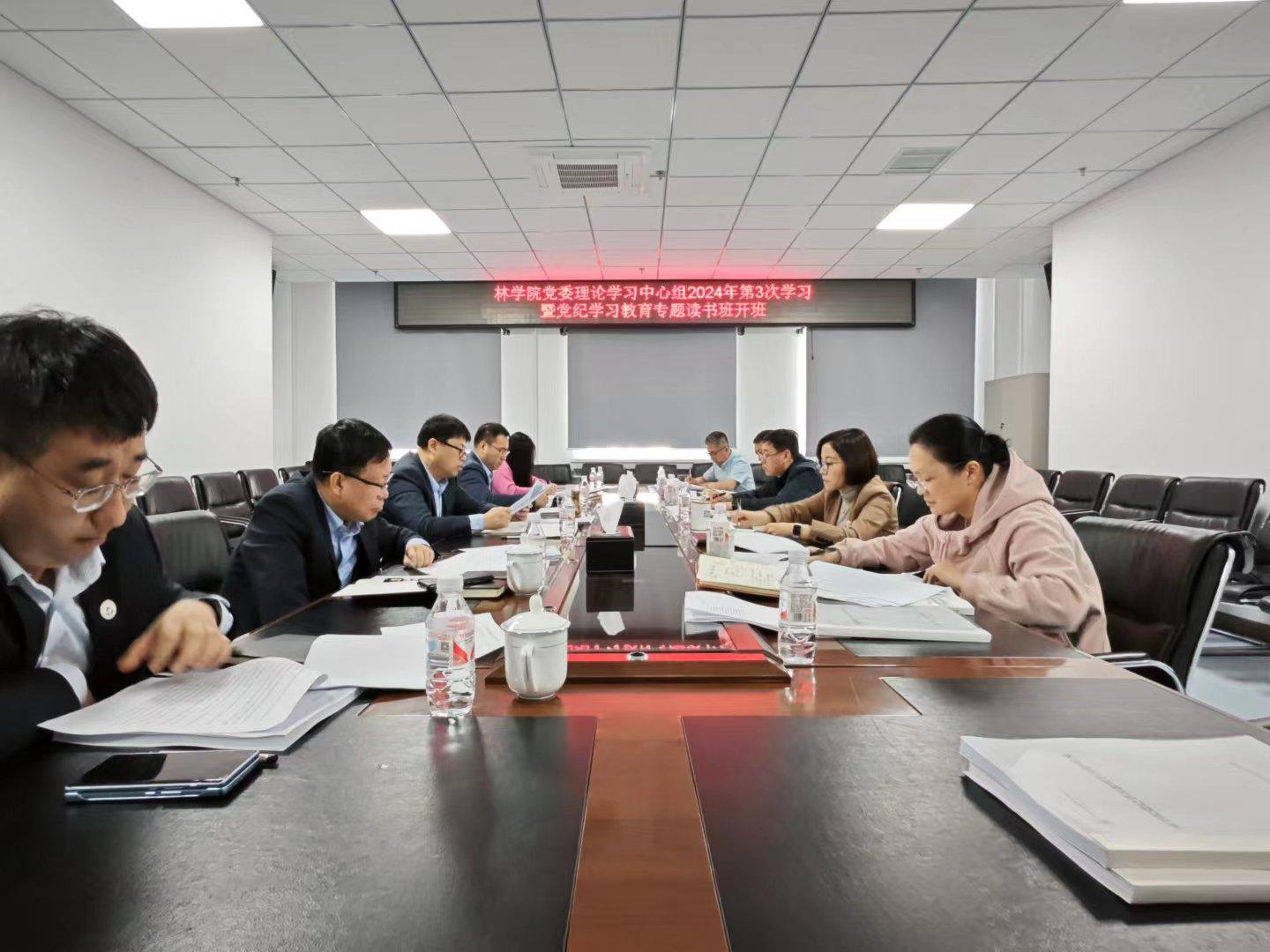 4月26日上午,williamhill英国在林科楼会议室开展党纪学习教育专题读书班开班并进行党委理论学习中心组集体学习。学院领导班子、党委委员、组织员参与学习,本次开班由学院党委书记宋妍主持。