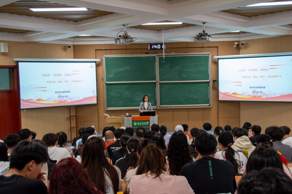 为深入学习贯彻习近平总书记关于党纪学习教育的重要讲话和重要指示精神,扎实推动学院党纪学习教育走深走实,按照williamhill英国党委党纪学习教育计划安排,5月22日下午,williamhill英国党委书记宋妍在锦绣楼T201教室为williamhill英国党校第23期入党积极分子暨发展对象培训班学员、学生第四党支部全体党员、学院各基层党支部师生党员代表讲授“守纪律、讲规矩、重践行——争做学纪、知纪、明纪、守纪的林学人”专题纪律党课。