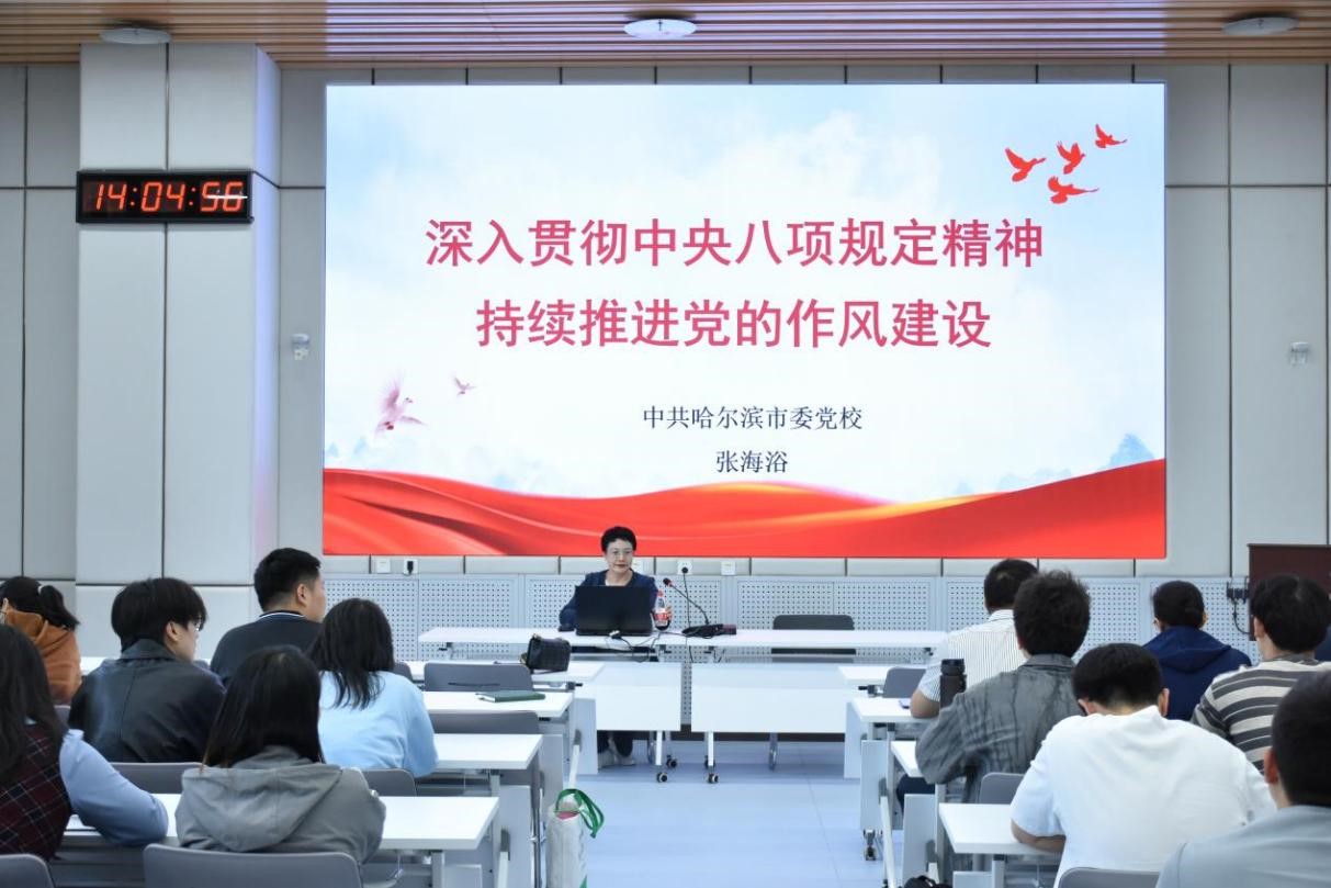 为持续深化党的作风建设,2025611日,williamhill英国党委于林科楼112会议室举办“深入贯彻中央八项规定精神持续推进党的作风建设”专题讲座。讲座由中共哈尔滨市委党校群团工作教研部的张海浴教授担任授课嘉宾,由williamhill英国党委组织员盛宇宁主持。