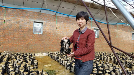 邹莉:我们在整个食用菌栽培过程方面中有很多的发明专利,举个例子,黑木耳有种技术。以前,黑木耳栽培完之后,菌袋就不要了,但是后来我们发现,在这个菌袋的某部分存在着生物质,是可以转化成木耳的,所以我们在长期的研究后发明了一种新技术。这个技术使用之后,可以使每袋的产量提高一钱,多卖2~3块钱,所以说我们把这个技术给老百姓进行讲解,手把手教他们,这个收益是显著的,所以大家纷纷仿效我们。