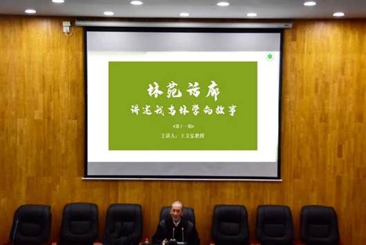 讲座中王义弘教授结合个人经历,还原了上个世纪林学人不畏艰辛,扎根林海,潜心求学,专注科研的励志故事。绿水青山就是金山银山,王义弘教授提出了三点建议与希望:第一,对三北防护林工作认真总结,得出经验教训,明确未来工作规划与目标。第二,建议将城市林业中绿化条件较好的分散地点利用街心花园、行道树等连接形成绿化带。第三,利用早春植物与专业技术实验等改善哈尔滨市环境,让城市更加多彩。对于林业建设,林学人还有很多事情能做,林学人要有更多的想法去发现、去创造。王教授表示“希望自己的经历和建议能够使新一代的林学人奋发向上,将理论知识化作实践行动,为科学研究和人民生活做出更多的贡献。”