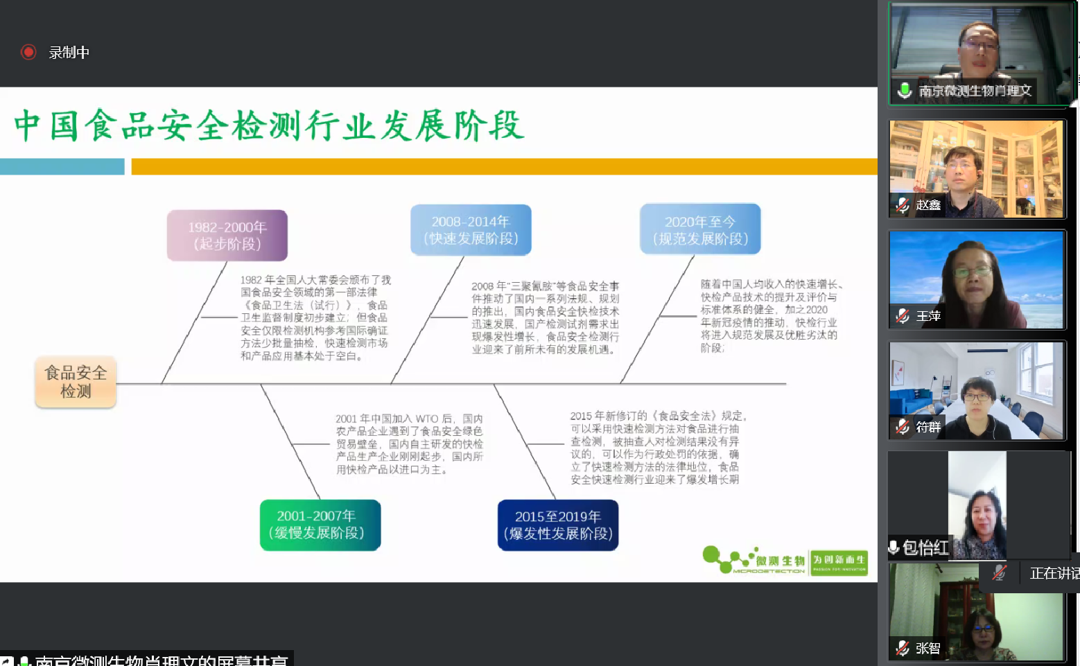 肖理文校友本次报告的主题是“快检技术在食品安全与新冠检测领域的应用”,报告中,肖理文校友详细的讲述了目前食品安全领域存在的问题以及快检技术对食品安全建设的有力推动作用。要从根本上解决我国的食品安全问题,必须对食品的生产、加工、流通和销售等环节实施全程监管和控制,基于此,采用快检技术对食品进行快速检测筛查在食品监管中具有不可或缺和无可取代的地位。另外,就目前新冠病毒核酸检测方法的痛点,肖理文校友提出了即时检验(point-of-care testing,POCT)发展的新趋势。作为南京微测的创始人,肖理文校友还同大家分享了创业过程中的宝贵心得和珍贵经验,希望在校的学弟学妹们把握好在校的学习生活,巩固好自己所学的专业知识,努力将专业知识与社会相结合,希望能够给对未来充满向往和憧憬的学弟学妹们一点启发和帮助。