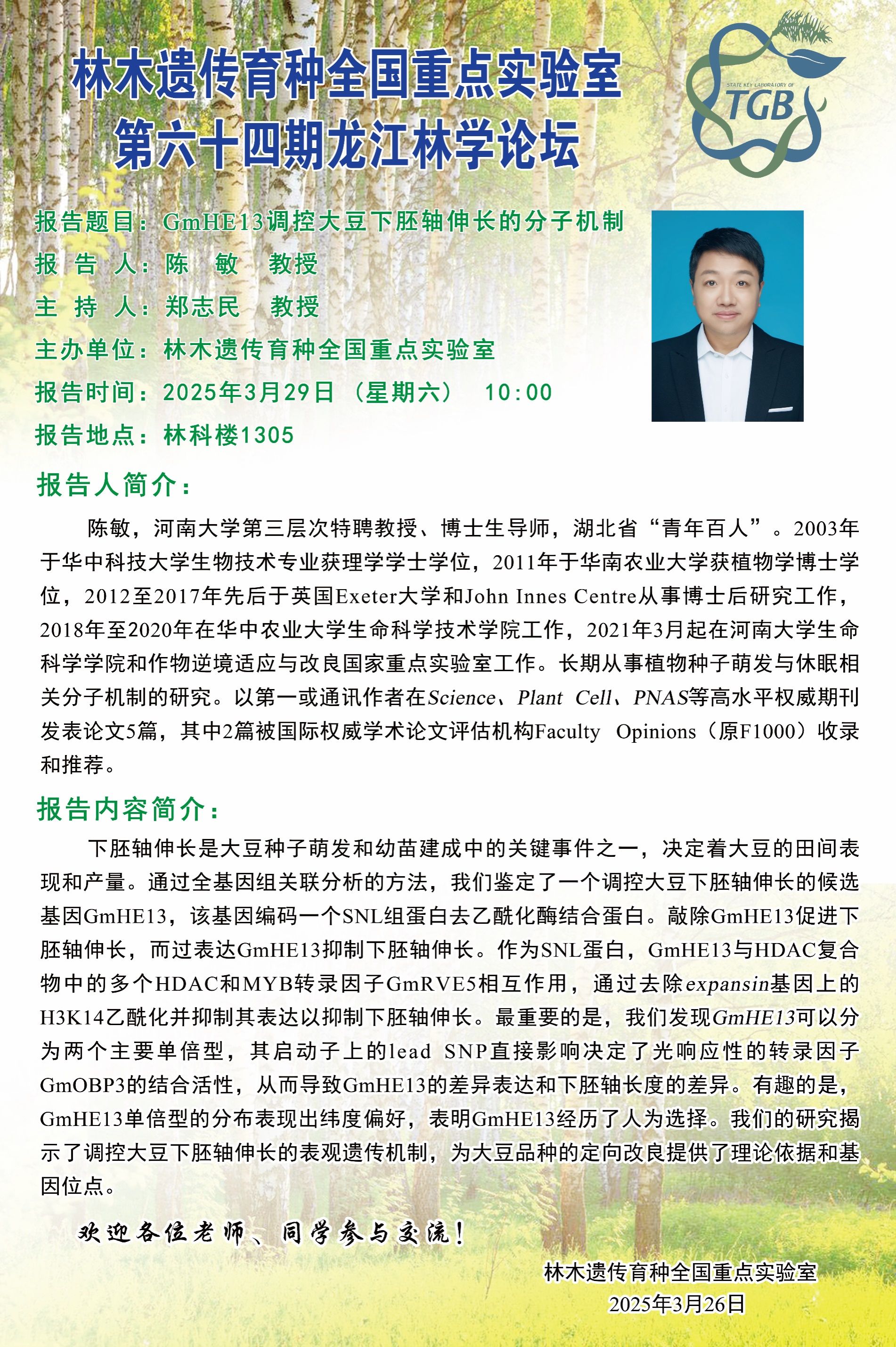 林木遗传育种全国重点实验室第六十四期龙江林学论坛