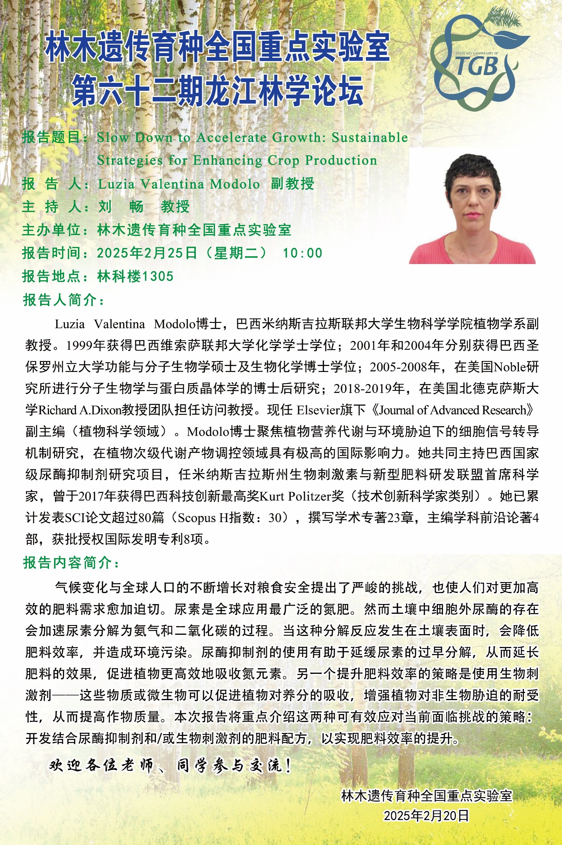 林木遗传育种全国重点实验室第六十二期龙江林学论坛