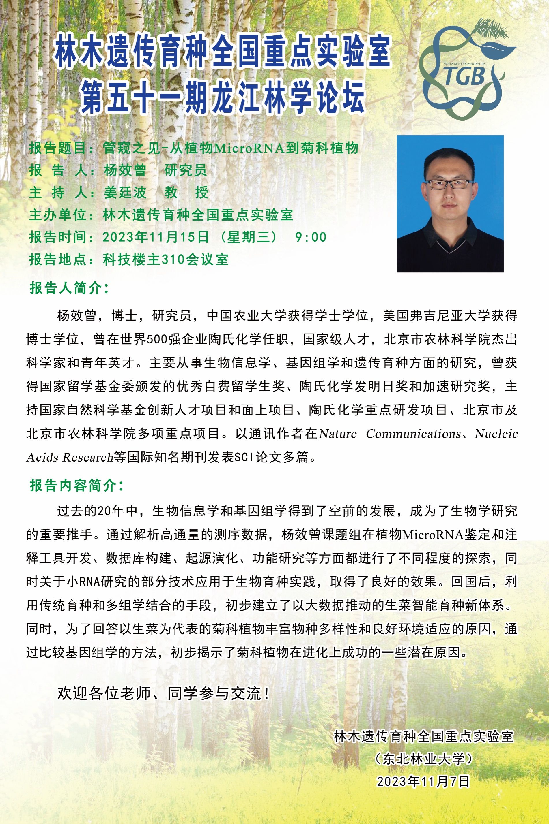 林木遗传育种全国重点实验室第五十一期龙江林学论坛