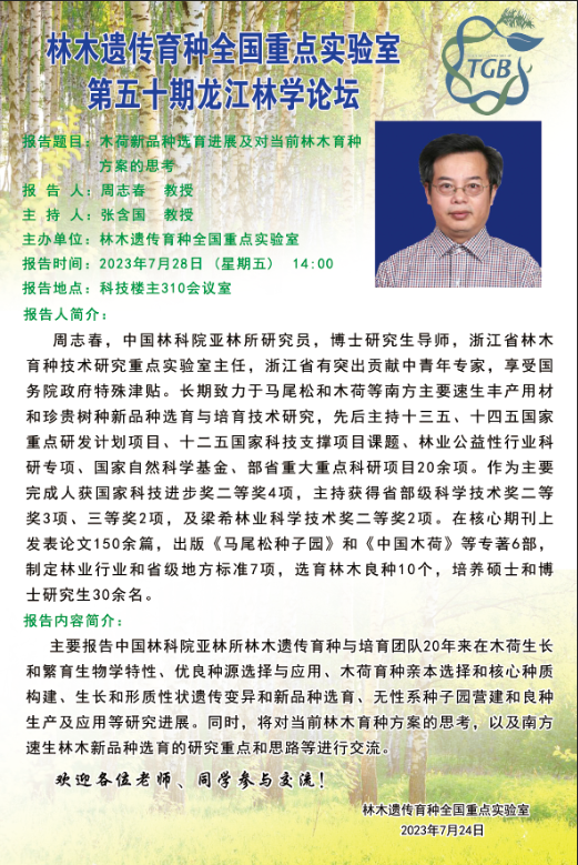 林木遗传育种全国重点实验室第五十期龙江林学论坛