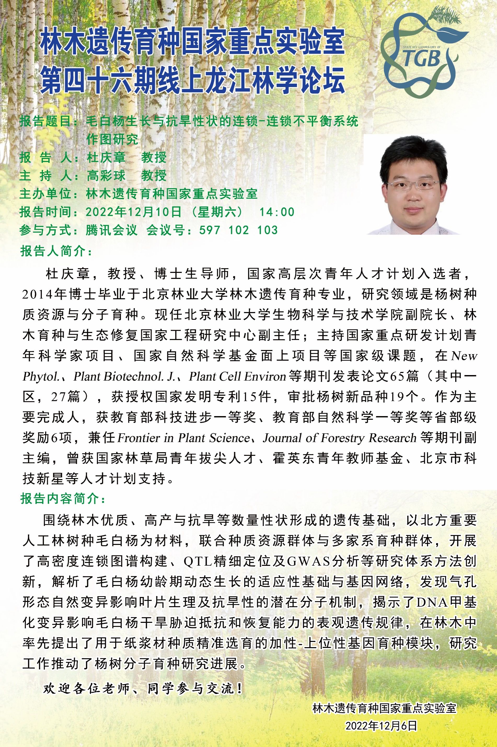 林木遗传育种国家重点实验室第四十六期龙江林学论坛