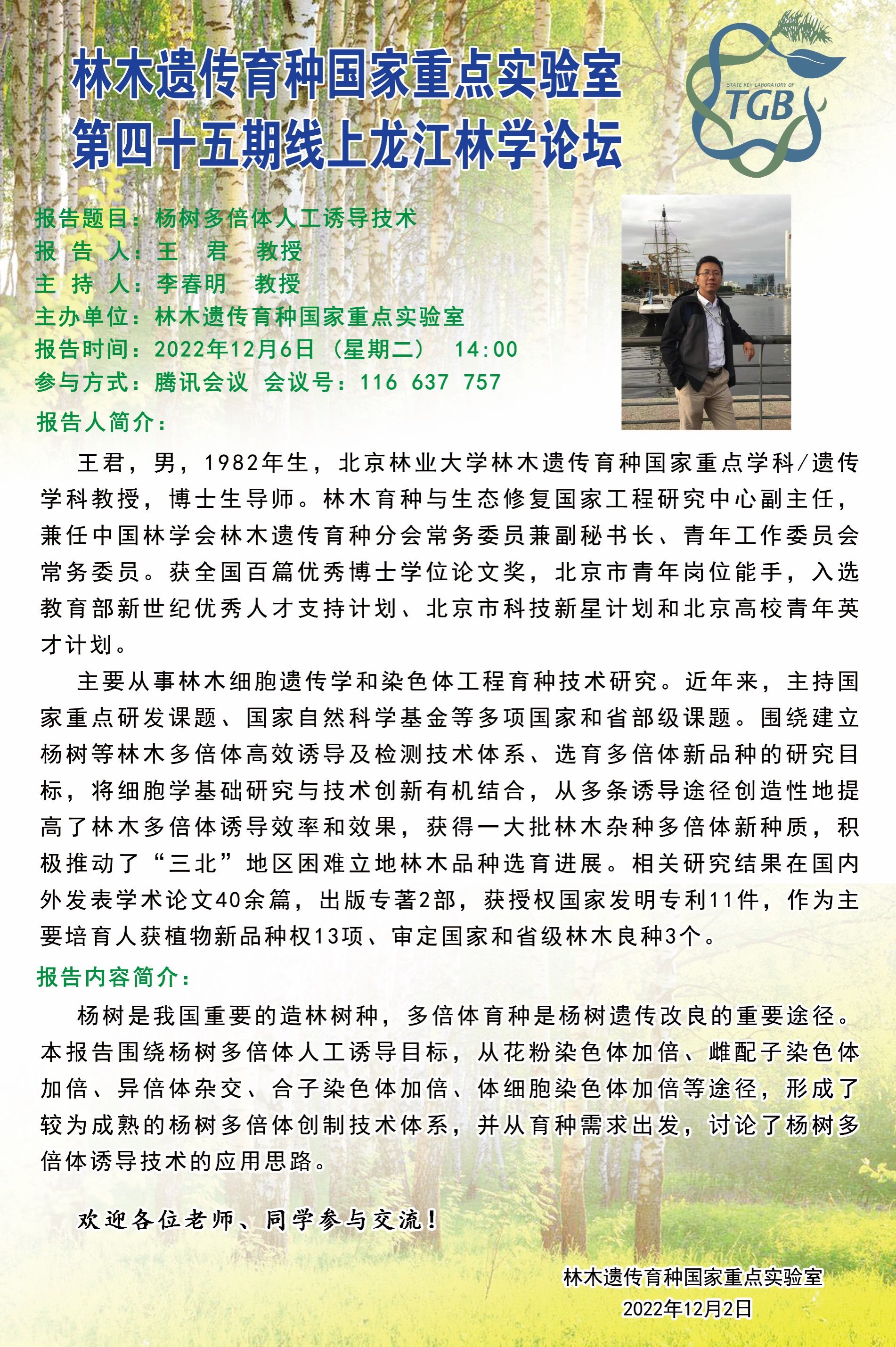 林木遗传育种国家重点实验室第四十五期龙江林学论坛