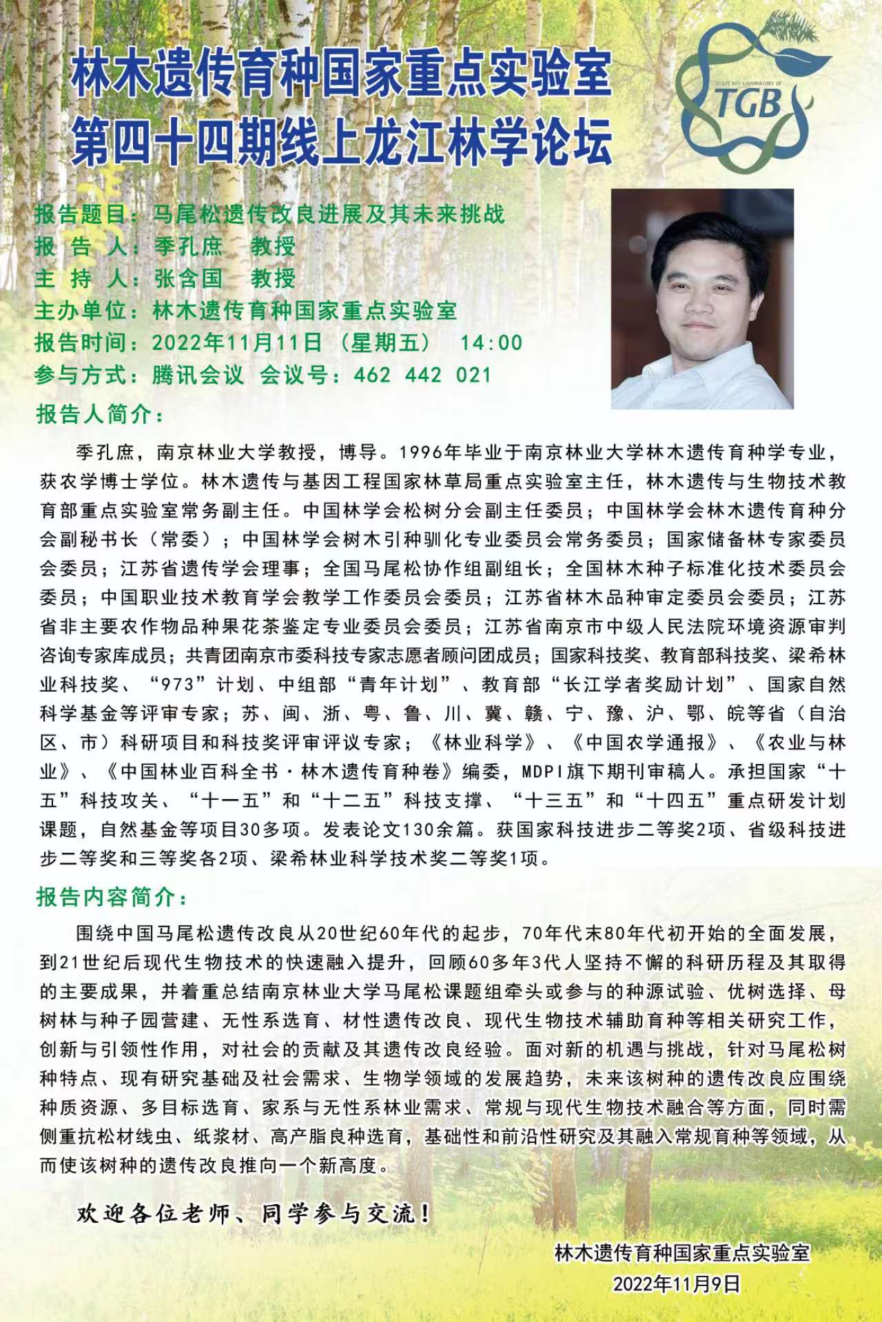 林木遗传育种国家重点实验室第四十四期龙江林学论坛