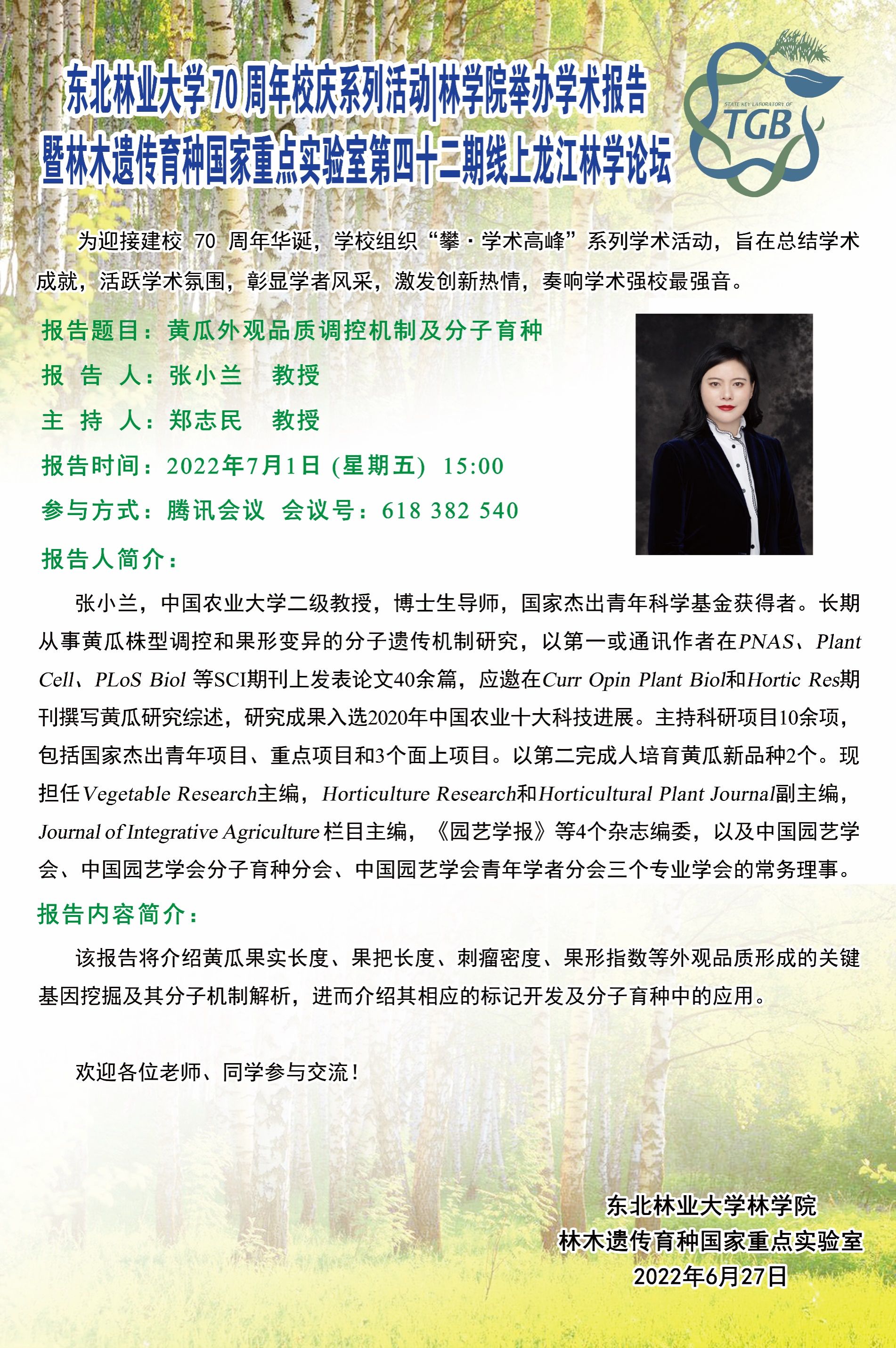 williamhill中文70周年校庆系列学术报告丨林木遗传育种国家重点实验室第四十二期龙江林学论坛