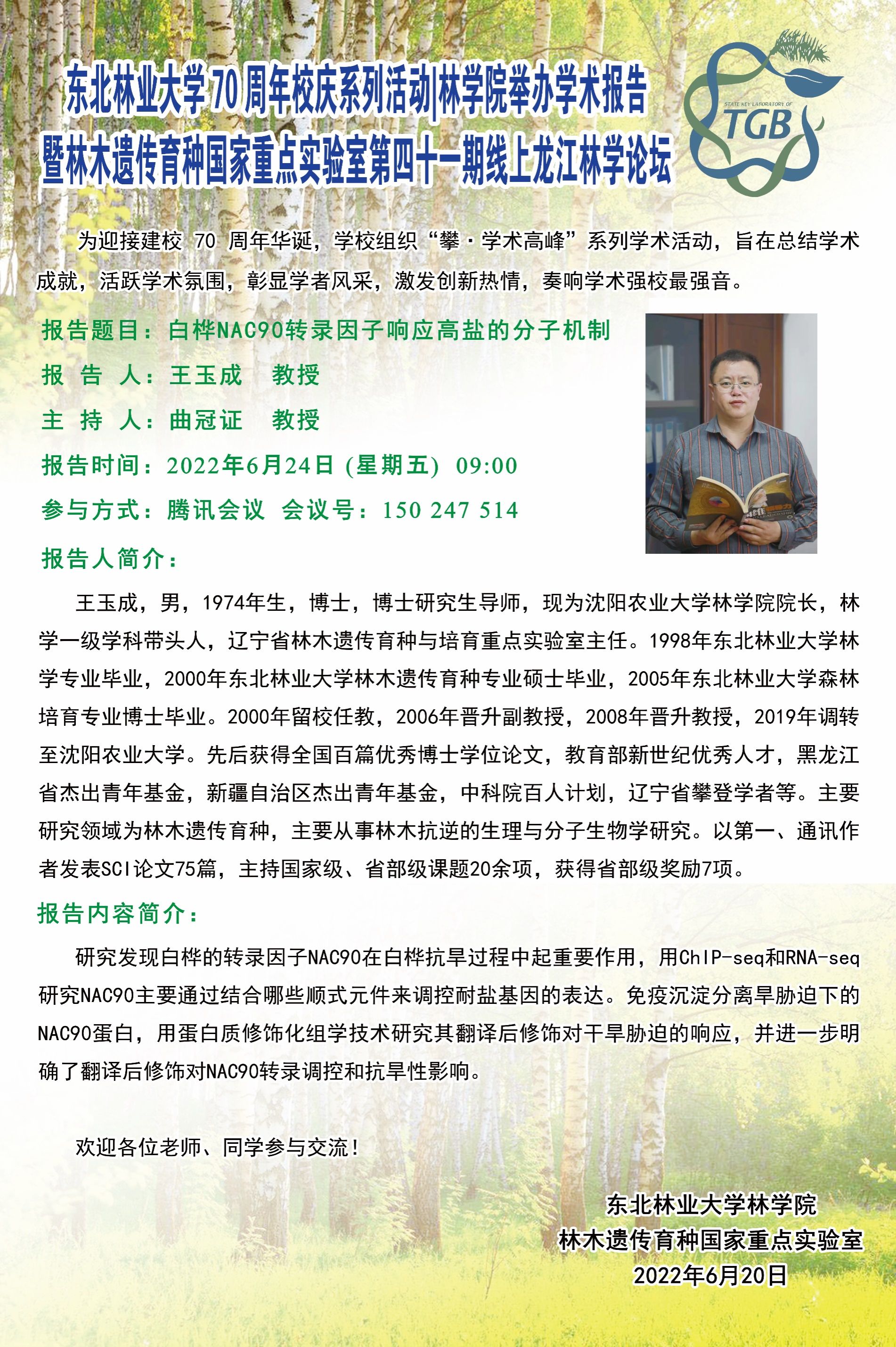williamhill中文70周年校庆系列学术报告丨林木遗传育种国家重点实验室第四十一期龙江林学论坛