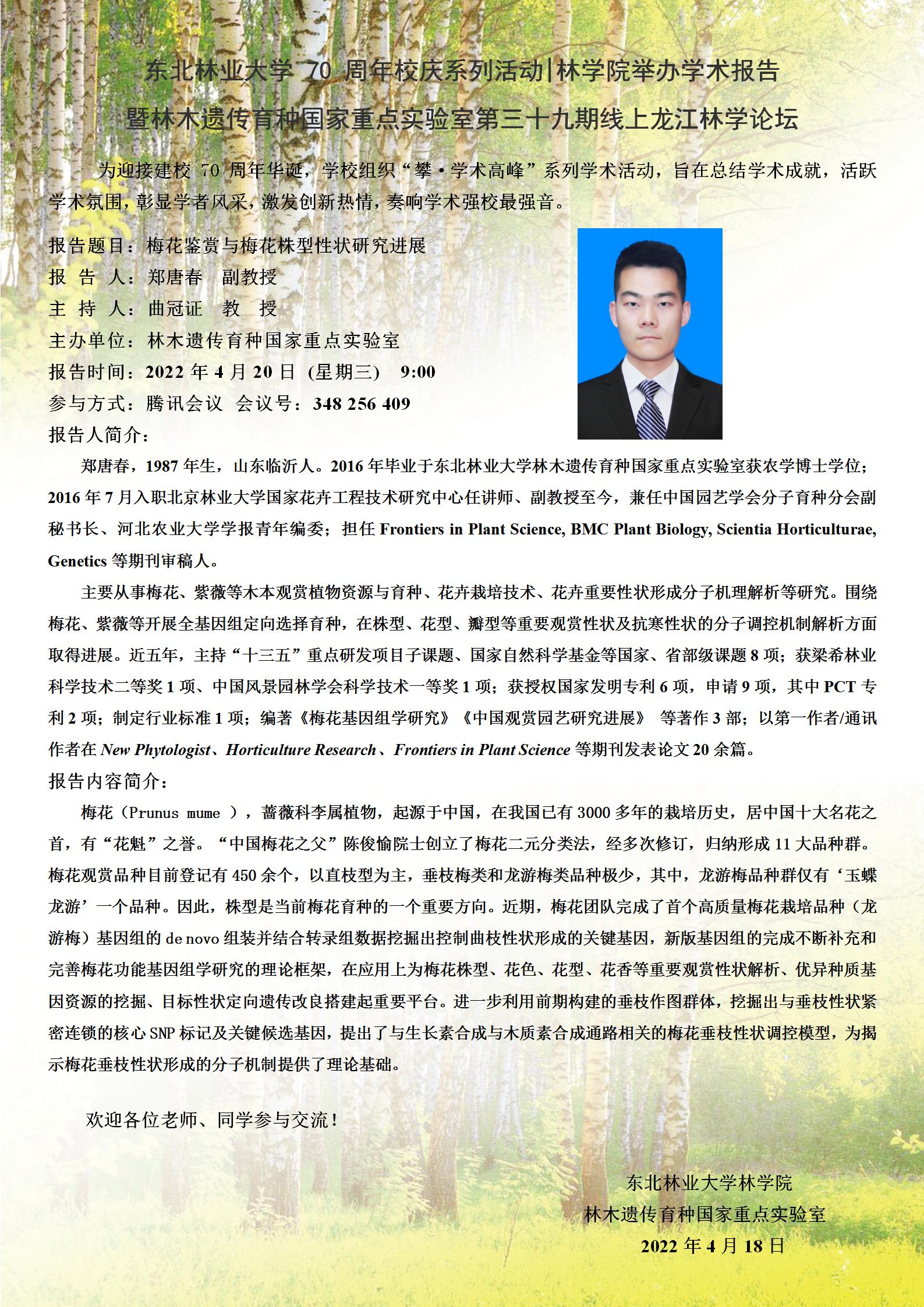 williamhill中文70周年校庆系列学术报告丨林木遗传育种国家重点实验室第三十九期龙江林学论坛