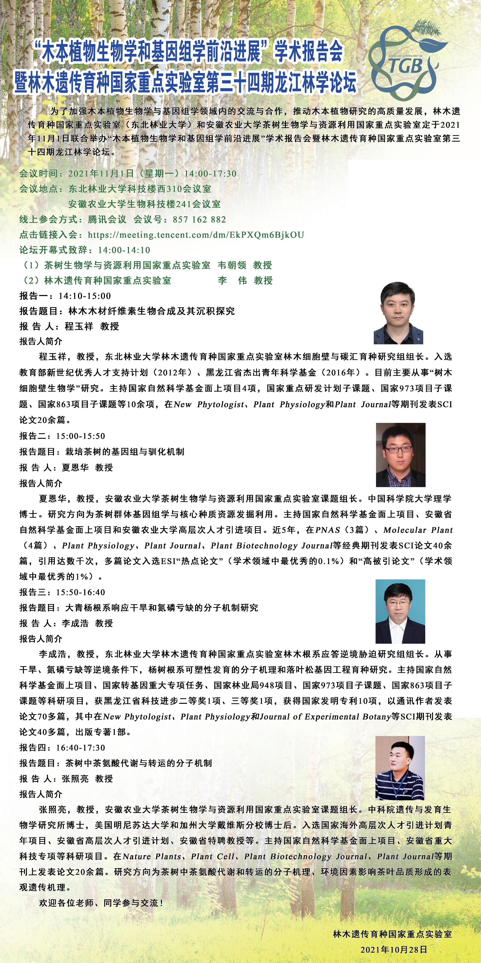 “木本植物生物学和基因组学前沿进展”学术报告会暨林木遗传育种国家重点实验室第三十四期龙江林学论坛