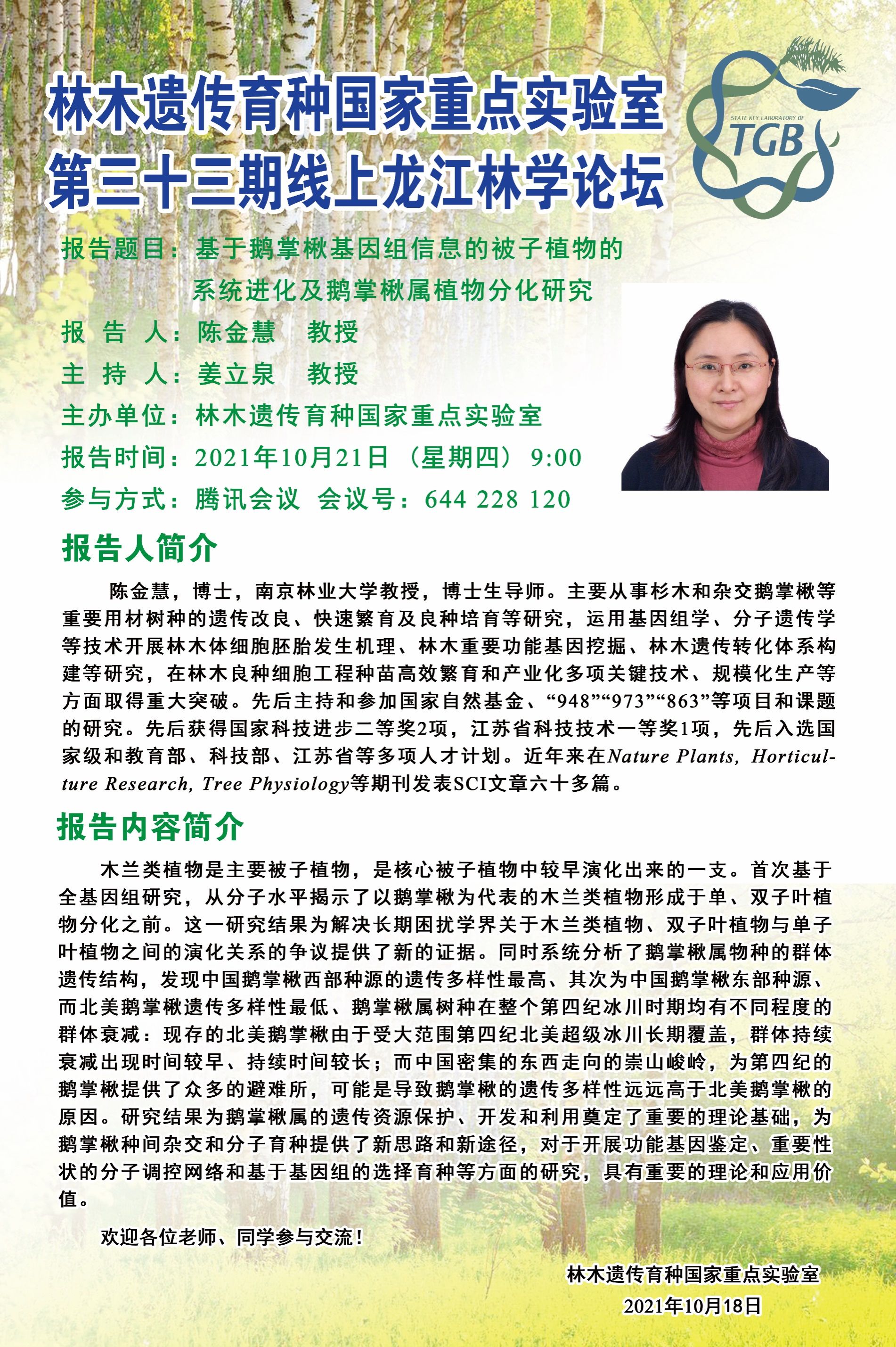 林木遗传育种国家重点实验室第三十三期龙江林学论坛