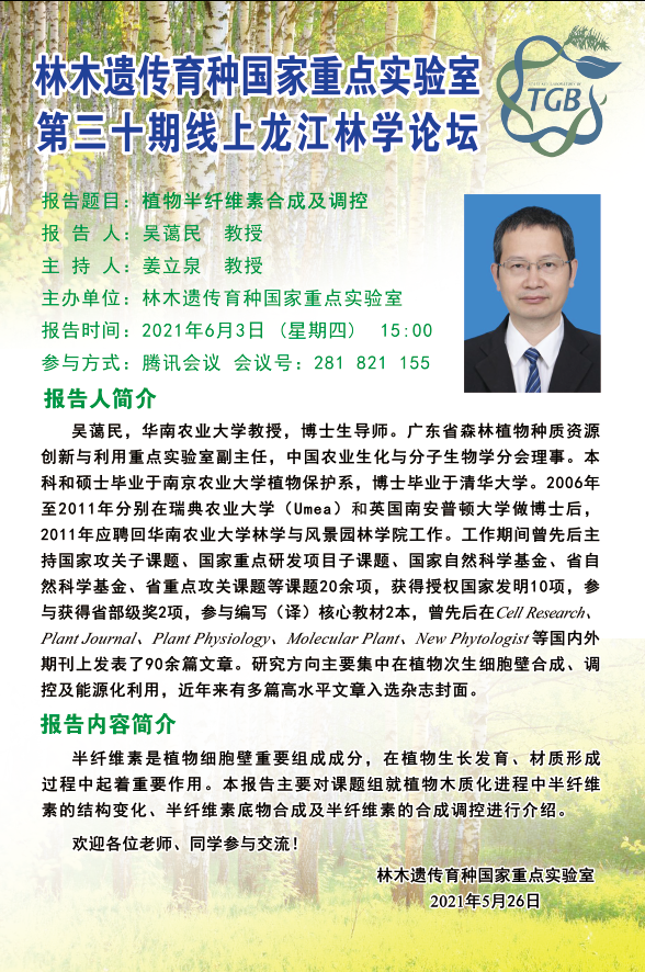 林木遗传育种国家重点实验室第三十期龙江林学论坛