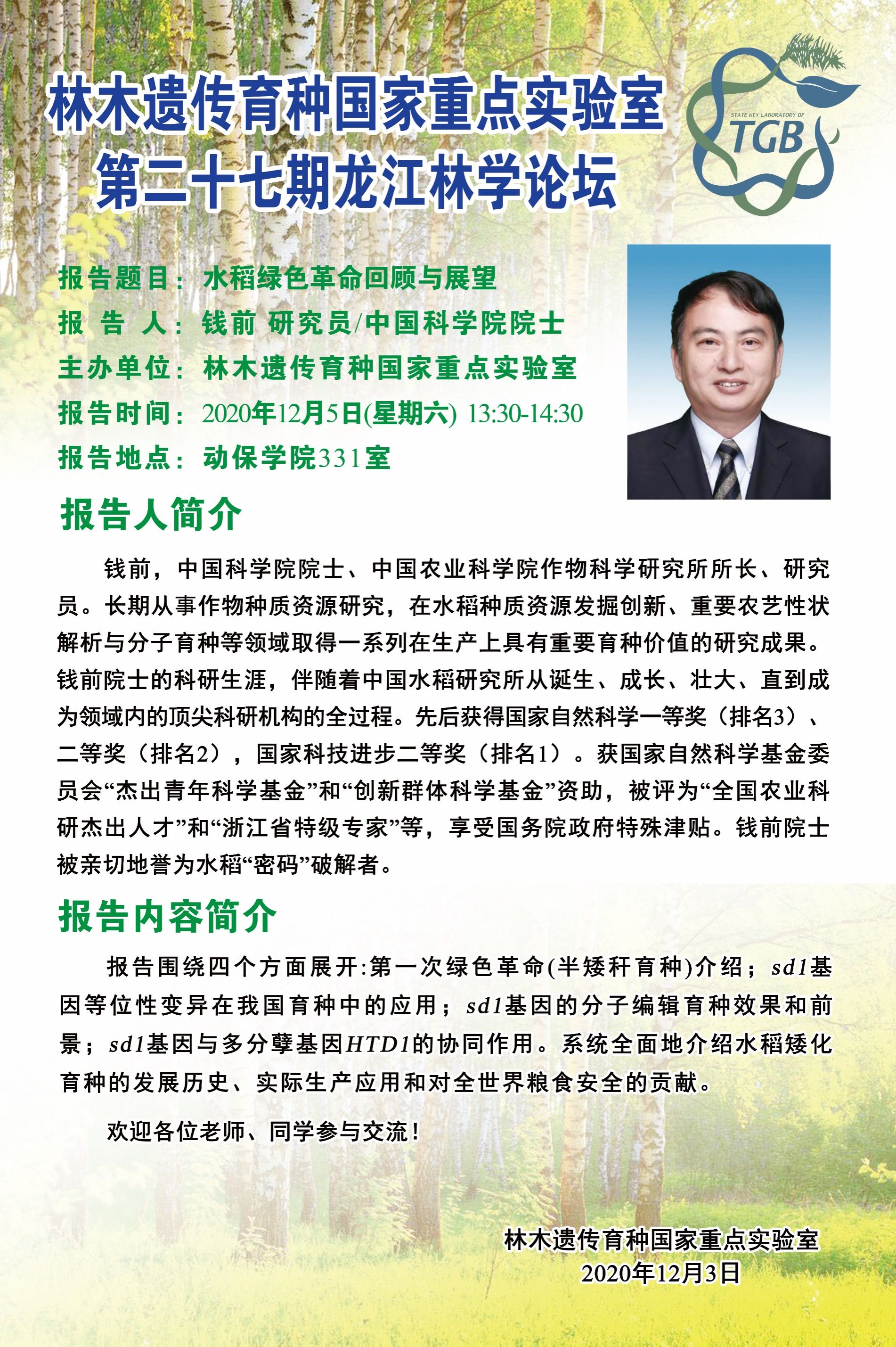 林木遗传育种国家重点实验室第二十七期龙江林学论坛