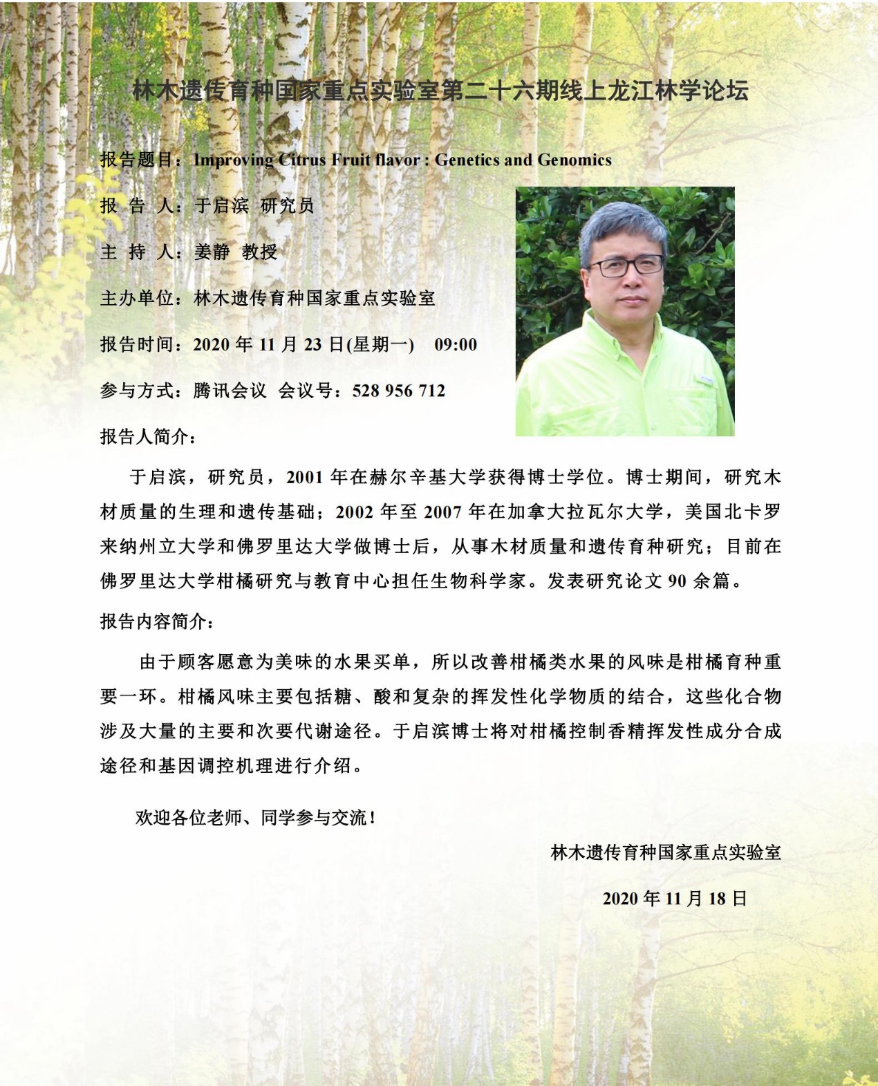 林木遗传育种国家重点实验室第二十六期龙江林学论坛