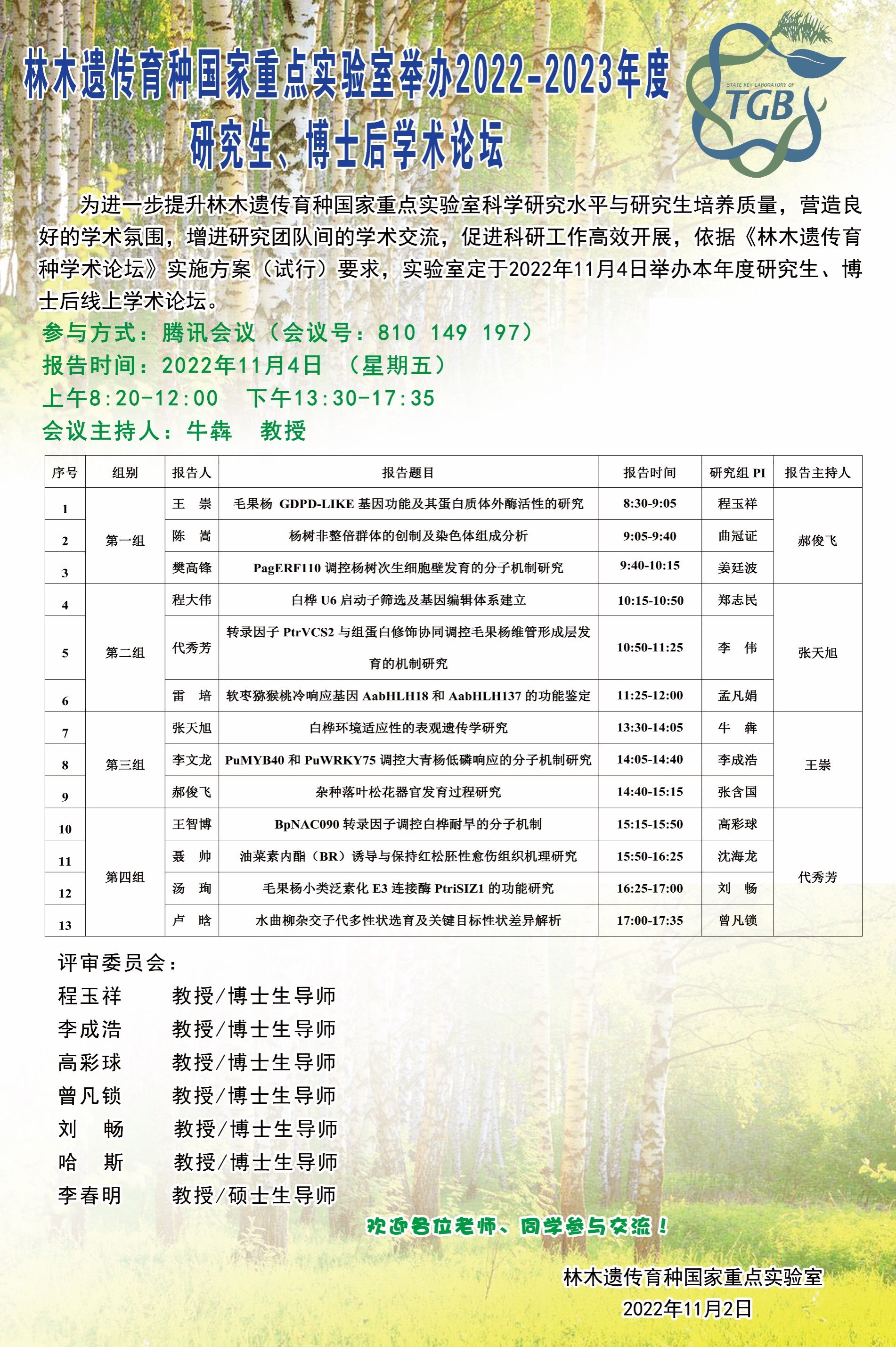 林木遗传育种国家重点实验室举办2022-2023年度研究生、博士后学术论坛